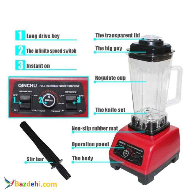 دستگاه مخلوط کن حرفه ای دارای پارچ نشکن ۲ لیتری موتور قوی ۱۳۵۰ ولت قابلیت افزایش سرعت چرخش دارای ولوم کم صنعتی و مخصوص کافی شاپ