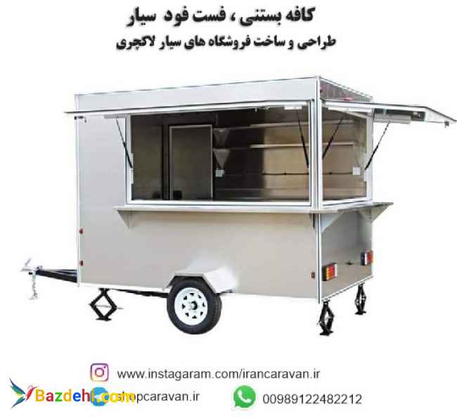 فست فود سیار در طرح و مدل های متنوع و لاکچری قابل یدک شدن به انوع خودروهای سبک شهری فست فود سیار : در این نوع کاراوان تجهیزات زیر قابل نصب است : سینک ظرفشویی و مخزن تامین آب و مخزن فاضلاب کابینت های دیواری و زمینی ، یخچال ایستاده ، یخچال تاپینگ ، یخچال رو میز کار ، یخچال دیس پلی – شو کیس ، فریزر ایستاده ، فریزر تاپینگ ، فریزر رو میز کار ، خط پخت پیتزا و سوخاری و برگر ، میز کار تلفن مشاوره : 09122482212
