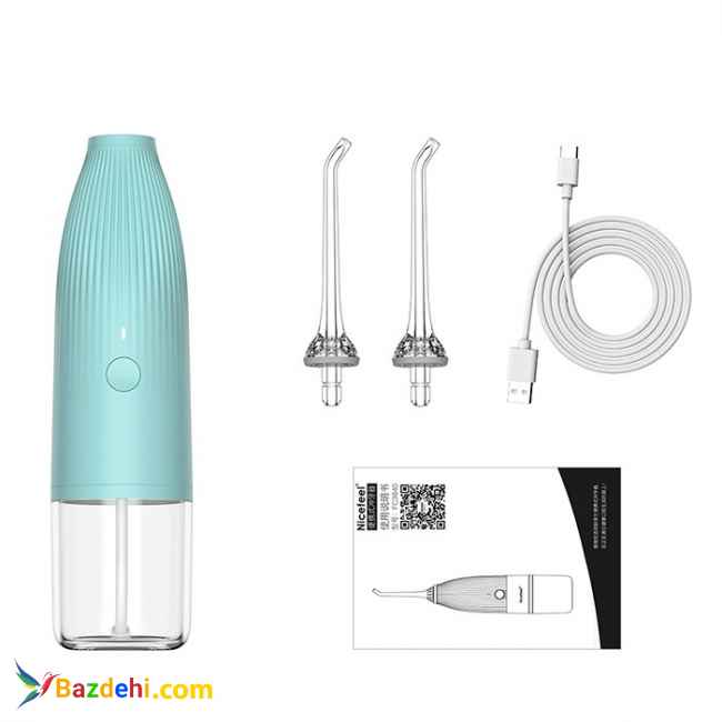 نام دستگاه: واتر فلوسر/ واتر پیک / جرم گیری و شست و شوی دهان و دندان برند :NiceFeel / نایس فیل مدل:FC3841 عملکرد: شست و شو ، جرمگیری دهان و دندان با فشار آب ویژگی های منحصر بفرد: کوچک، سبک، قابل حمل تعداد سری : 2عدد منبع انرژی: باطری قابل شارژ ولتاژ: 100-240V میزان پاشش آب:1500-1000بار در دقیقه ظرفیت باطری: 800mAh Lithium Battery مدت زمان شارژ:3-2ساعت حجم مخزن: 100ml ضد آب: IPX7 Waterproof تایمر اتوماتیک:2دقیقه لوازم جانبی همراه:دو عدد نازل آب و کابل شارژ وزن:200گرم سایز:52*52*189