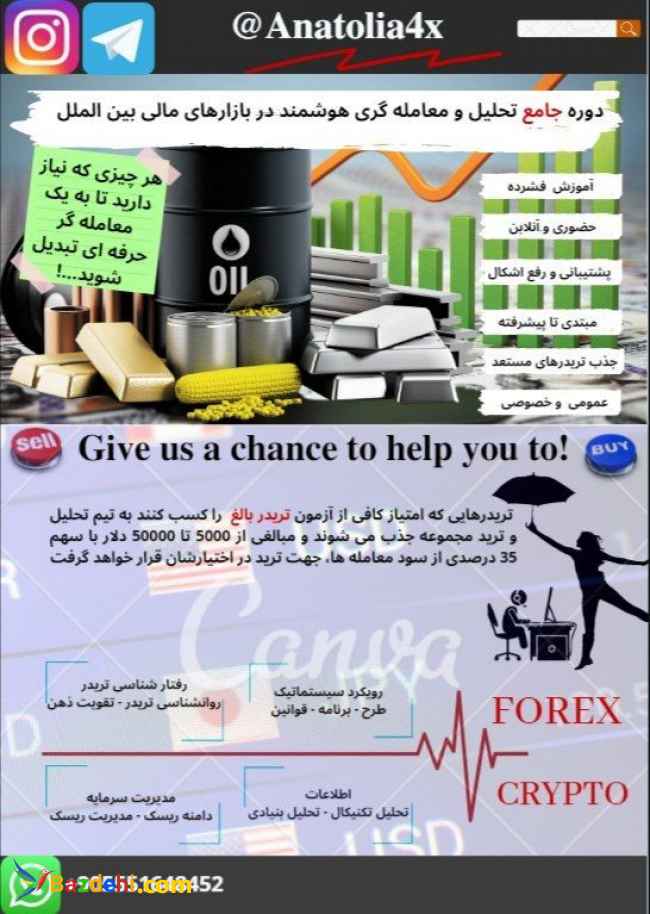 ✅هر چیزی که نیاز دارید تا به یک معامله گر حرفه ای تبدیل شوید.. ✅تریدرهای که امیتاز کافی از آزمون تریدر بالغ را کسب کنند با امتیازات عالی به تیم تحلیل و ترید مجموعه آناتولیا جذب خواهند شد
