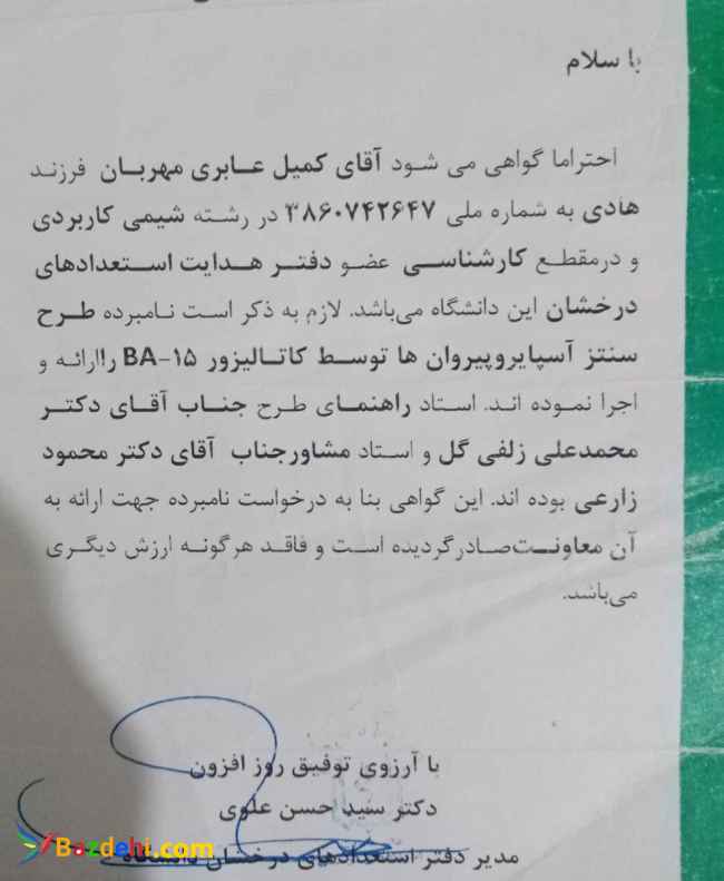 تدریس خصوصی شیمی توسط استاد کمیل عابری مهربان