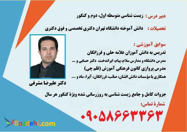 تدریس خصوصی و معلم خصوصی زیست شناسی از پایه تا کنکور