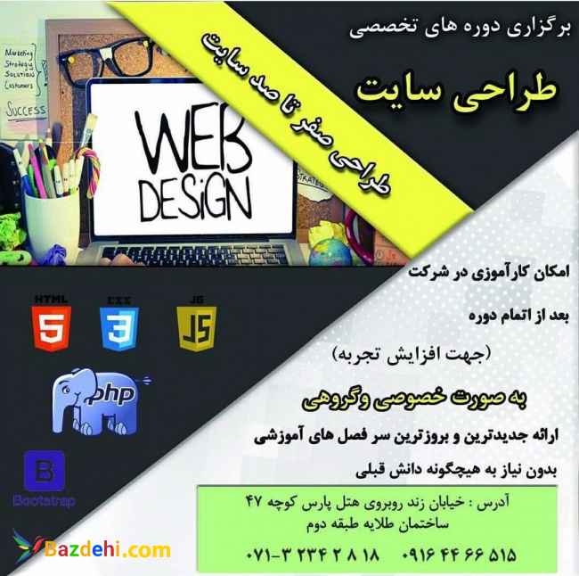 دوره تخصصی طراحی سایت به صورت خصوصی معرفی به بازار کار امکان کارآموزی در پروژه های اجرایی کاملا پروژه محور زبان PHP صفر تا صد بدون نیاز به دانش قبلی جدیدترین و به روز ترین سرفصل ها کامل و جامع زیر نظر استاد با تجربه Mah.ariana ۰۹۱۶۴۴۶۶۵۱۵