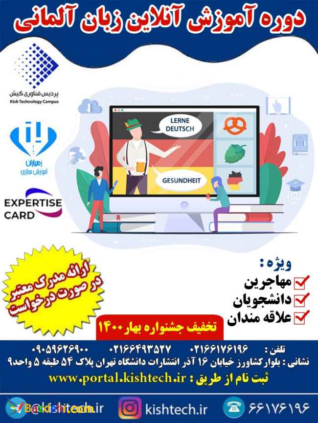 آموزش زبان germany (آلمانی)دغدغه نیست بلکه نیاز به کمی برنامه ریزی و همراهی دارد. در آموزش آنلاین زبان germany( آلمانی ) بهترین راه برای آموزش زبان germany(آلمانی) است ، بی تردید بهترین راه برای یادگیری آلمانی،تقویت همه مهارت های شنیداری، نوشتاری، مکالمه، درک مطلب، خوانداری و… به صورت توام می باشد. به ویژه برای دوستانی که در محیط کارو همچنین افرادی که در حال مهاجرت هستند و نیازمند یادگیری آلمانی هستند، توصیه می شود که همه مهارت ها را یکجا فرا بگیرند. برای افزایش سرعت دوستان در آموزش زبان آلمانی، کلاس آموزشی به شکل آنلاین برگزار می شود تا شما را از شرکت در هر کلاس دیگری بی نیاز کند. کلاس های آنلاین : دوره ها را گام به گام با ما تا سطح نهایی پیش ببرید. کلاس انلاین یادگیری آلمانی یکی از کارآمدترین روش های یادگیری زبان است که با توسعه فضای مجازی در سال های اخیر جایگاه خاصی پیدا کرده است. امکان مطالعه دروس در هر زمان، امکان ارتباط با استاد در هر زمان، صرفه جویی در وقت و هزینه، مناسب بودن برای افراد پر مشغله یا شاغل، مهمترین مزایای آموزش آنلاین است. برای این منظور میتوانید با کلیک بر روی گزینه شروع کلاس آنلاین ، از قیمت کلاس های آنلاین و نحوه برگزاری آنها باخبر شوید و در صورت تمایل با تکمیل فرم ثبت نام، در این دوره ها ثبت نام کنید. جلسه اول تمامی دوره ها به صورت نیم بها است و در جلسه اول تدریس زبان، سطح دقیق شما ارزیابی خواهد شد. ارتباط با ما : تلفن : ۰۲۱۶۶۱۷۶۱۹۶ ۰۲۱۶۶۴۹۳۵۲۷ ۰۹۰۵۹۶۲۶۹۰۰ نشانی : بلوارکشاورز خیابان ۱۶ آذر انتشارات دانشگاه تهران پلاک ۵۴ طبقه۵ واحد ۹