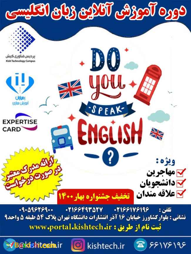 آموزش زبان انگلیسی دغدغه نیست بلکه نیاز به کمی برنامه ریزی و همراهی دارد. در آموزش آنلاین زبان انگلیسی بهترین راه برای آموزش است ، بی تردید بهترین راه برای یادگیری آموزش زبان انگلیسی،تقویت همه مهارت های شنیداری، نوشتاری، مکالمه، درک مطلب، خوانداری و… به صورت توام می باشد. به ویژه برای دوستانی که در محیط کارو همچنین افرادی که در حال مهاجرت هستند و نیازمند یادگیری زبان انگلیسی هستند، توصیه می شود که همه مهارت ها را یکجا فرا بگیرند. برای افزایش سرعت دوستان در آموزش زبان انگلیسی، کلاس آموزشی به شکل آنلاین برگزار می شود تا شما را از شرکت در هر کلاس دیگری بی نیاز کند. کلاس های آنلاین : دوره ها را گام به گام با ما تا سطح نهایی پیش ببرید. کلاس انلاین یاد گیری انگلیسی یکی از کارآمدترین روش های یادگیری زبان است که با توسعه فضای مجازی در سال های اخیر جایگاه خاصی پیدا کرده است. امکان مطالعه دروس در هر زمان، امکان ارتباط با استاد در هر زمان، صرفه جویی در وقت و هزینه، مناسب بودن برای افراد پر مشغله یا شاغل، مهمترین مزایای آموزش آنلاین زبان انگلیسی است. برای این منظور میتوانید با کلیک بر روی گزینه شروع کلاس آنلاین ، از قیمت کلاس های آنلاین و نحوه برگزاری آنها باخبر شوید و در صورت تمایل با تکمیل فرم ثبت نام، در این دوره ها ثبت نام کنید. جلسه اول تمامی دوره ها به صورت نیم بها است و در جلسه اول تدریس زبان، سطح دقیق شما ارزیابی خواهد شد. ارتباط باما : تلفن : ۰۲۱۶۶۱۷۶۱۹۶ ۰۲۱۶۶۴۹۳۵۲۷ ۰۹۰۵۹۶۲۶۹۰۰ نشانی : بلوارکشاورز خیابان ۱۶ آذر انتشارات دانشگاه تهران پلاک ۵۴ طبقه۵ واحد ۹ ثبت نام از طریق سایت زیر www.portal.kishtech.ir
