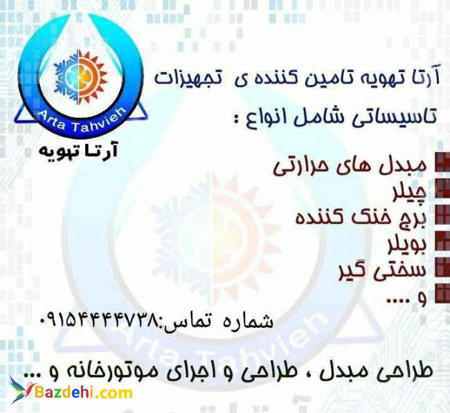 آرتا تهویه ❄☀ تامین کننده ی تمامی تجهیزات تاسیساتی? تولید کننده ی چیلر آرتاسرویس فعال در زمینه نصب? واجرا? خدمات رسانی ?‍?سیستمهای گرمایشی☀ و سرمایشی❄ شماره تماس۰۹۱۵۴۴۴۴۷۳۸