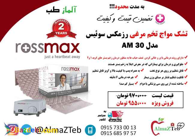 آلمازطب نماینده فروش محصولات و تجهیزات پزشکی رزمکس سوئیس با کمترین قیمت ممکن تب سنج،فشار سنج،ترازو دیجیتالی،نبولایزر،گام شمار،تشک مواج،گوشی پزشکی و ... برای کسب اطلاعات بیشتربا ما تماس حاصل فرمائید 09156859757