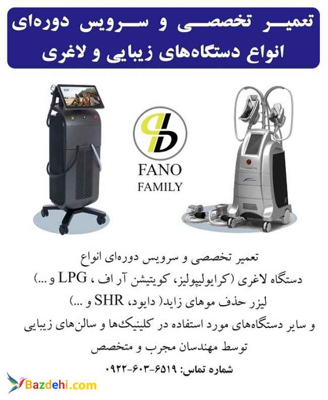 تعمیرات تخصصی و سرویس دورهای انواع دستگاههای زیبایی و لاغری نگران نباشید، ما درستش میکنیم... تعمیر تخصصی و سرویس دورهای انواع لیزر حف موهای زاید( تیتانیوم، پلاتینیوم، دایود، SHR و ...) دستگاه لاغری( کرایولیپولیز، کویتیشن آر اف، LPG و ...) تعمیر انواع دستگاه جوانساز و زیبایی( هایفو، کربوکسی، آر اف سرجری، پلاسماجت و ...) و سایر دستگاهها و تجهیزات مورد استفاده در کلینیکها و سالنهای زیبایی توسط مهندسین متخصص. تعمیر و نگهداری از تجهیزات کلینیک و سالن زیبایی خود را به متخصصان با تجربه بسپارید. جهت مشاوره با ما تماس بگیرید: 6519-603-0922
