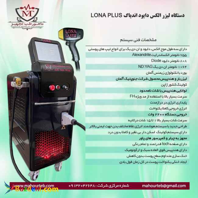 شرکت ماهور طب دستگاه لیزر دایود را با قیمتی بسیار استثنایی در شهر همدان به فروش می رساند. قیمت این دستگاه لیزر با وجود کیفیت عالی و اصل بودنش بسیار مناسب است، زیرا فروش دستگاه لیزر دایود لونا پلاس در همدان توسط شرکت تولید کننده این دستگاه و بدون واسطه انجام می شود. بنابراین با قیمتی بسیار عالی به دست خریداران می رسد. بدون واسطه با یکی از بزرگترین شرکت های تولید کننده و عرضه کننده انواع دستگاه های زیبایی و لیزر کشور در ارتباط باشید. ویژگی های دستگاه لیزر دایود لونا پلاس دستگاه لیزر دایود لونا پلاس برای تمامی تیپ های پوستی 1 تا 6 مناسب است و مجهز به چیلر داخلی قدرتمند و سیستم خنک کننده بسیار قوی است که می توان با وجود این قابلیت منحصر بفرد، فرایند لیزر را با توان بالا و بدون ایجاد سوختگی روی سطح پوست و همچنین درد بر روی تمامی تیپ های پوستی انجام داد. • 755 نانومتر الکساندرایت • 808 نانومتر دایود • 1064 نانومتر اِن دی یگ • لیزربار و هندپیس ساخت کشور آلمان • توانایی هندپیس با شات نامحدود • خروجی دستگاه 2200 وات • مجهز به چیلر و کمپرسور های پاور فروش دستگاه لیزر در همدان فروش دستگاه لیزر موهای زائد دایود لونا پلاس در همدان به صورت های مختلف نقد و اقساط بدون بهره همراه با یک سال گارانتی معتبر و 10 سال خدمات پس از فروش انجام می شود. طریقه نصب و راه اندازی دستگاه لیزر لونا پلاس و همچنین نحوه کار با آن توسط متخصصین ماهور طب به طور کامل و رایگان به پزشک و اپراتور دستگاه داده می شود و پس از آن مدرک معتبر بین المللی از مراکز معتبر علمی ارائه خواهد شد. خرید دستگاه لیزر دایود اصل و با کیفیت کار دشواری است، اما اگر شرکت های معتبری که این دستگاه را تولید و عرضه می کنند را بشناسید خیال شما از بابت خرید و ضمانت محصول راحت می شود. ماهور طب ارائه دهنده دستگاه لیزر موی زائد دایود اصل با بهترین قیمت در استان همدان و تمام نقاط کشور برای دریافت اطلاع از قیمت و شرایط فروش دستگاه لیزر دایود لونا پلاس در همدان با مشاوران ماهور طب تماس بگیرید. مشاور ماهور طب: 09132042648 آدرس سایت : www.mahourteb.com *** تجهیز فقط به صورت حضوری در محل شرکت ماهور طب انجام می شود*** توجه : شرکت ماهور طب هیچ گونه فروش اینترنتی ندارد!!!