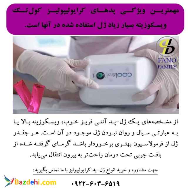 مهمترین ویژگی پدهای کرایولیپولیز کولتک ویسکوزیته بسیار زیاد ژل استفاده شده در آنها است.