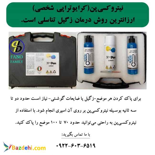 نیتروکسیپن( کرایوتراپی شخصی) ارزانترین روش درمان زگیل تناسلی است. اسپری نیتروکسی پن ( اسپری کرایوتراپی شخصی) حاوی 200 میلیلیتر دی کسید نیتروژن (N2O) که دمای آن به حدود منفی 96 درجه سانتیگراد میرسد. این محصول قابلیت کاهش دمای بافت تا حدود منفی 70 درجه سانتیگراد را دارد. برای پاک کردن هر موضع – زگیل تناسلی یا هر مدل ضایعات گوشتی- نیاز است حدود دو تا سه ثانیه بر روی آن موضع اسپری انجام شود. با توجه به حجم 200 میلی لیتری اسپری، به راحتی امکان پاک کردن حدود 100 موضع و جود دارد و هزینه پاک کردن هر موضع کمتر از 20 هزار تومان میشود. کرایوتراپی (Cryotherapy) یا سرما درمانی یک روش موثر، غیر تهاجمی و ارزان قیمت برای از بین بردن و فریز کردن ضایعات و تودههای پوستی مانند زگیل و همچنین ضایعات گوشتی است. در حقیقت در این روش قسمتی از بدن را تحت دمای بسیار پایین قرار داده و با انجماد سعی در از بین بردن ضایعات پوستی به طور کامل داریم. مهمترین مزیت نیتروکسیپن امکان استفاده خانگی و شخصی آن است. با استفاده از این محصول علاوه بر کاهش هزینههای درمان، از تردد و اتلاف وقت جهت مراجعه به کلینیک هم جلوگیری میشود. نیتروکسی پن حاوی یک عدد اسپری 200 میل دی اکسید نتیروژن مایع، دو عدد ژل آنتی فریز جهت محافظت از موضع هدف برای کرایو و نازل مخصوص میباشد. امکان ارسال به سراسر ایران وجود دارد. جهت دریافت فایل ویدیویی آموزش استفاده از محصول، مشاوره و خرید با ما تماس بگیرید: 0922-603-6519