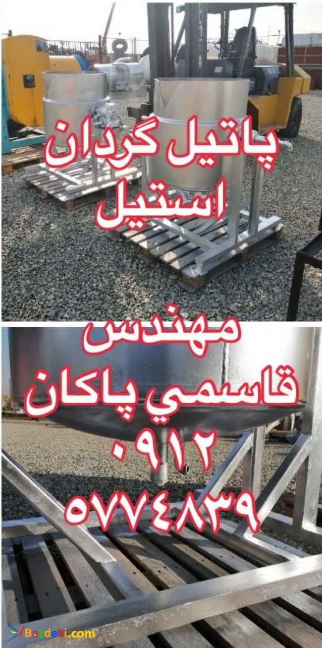 پاتیل استیل گردان ظرفیت 300 لیتر دوجداره بخار خور جداره اول ورق 4 میل استیل 304 جداره دوم ورق 4 میل آهن پایه شاسی فلزی همراه با گیربکس حلزونی دستی مناسب پخت مربا و ... کارکرده، تمیز و سالم مهندس قاسمی پاکان 09125774839 (بنگاه مخازن و ماشین آلات استیل قاسمی پاکان)(استیل تجهیز پاکان) (((مخازن استیل تجهیزات و ماشین آلات استیل لبنی نوشیدنی غذایی دارویی آرایشی بهداشتی شیمیایی جهت بازدید موجود میباشد)))