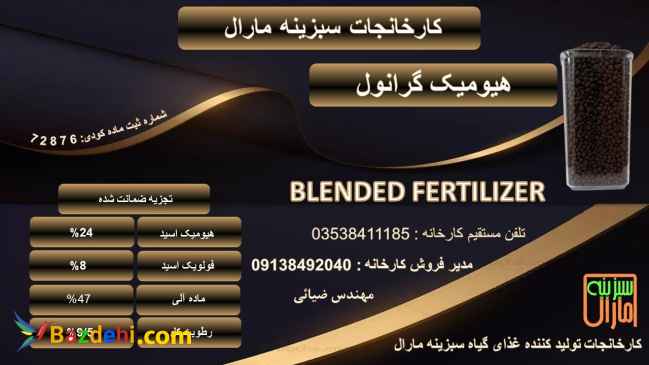 کارخانجات سبزینه مارال تولید کننده انواع کودهای شیمیایی و ارگانیک هیومیک اسید گرانول دارای ثبت کودی و به دلیل داشتن معدن اختصاصی لئوناردیت مقرون به صرفه و کاملاً ارگانیک می باشد فواید این محصول ضد شوری تنظیم کننده PH خاک اصلاح کننده خاک محرک ریشه و... می باشد ارسال به سراسر کشور خرید مستقیم از کارخانه و بدون واسطه به صورت نقد و اقساط مدیر فروش کارخانه : 09138492040 مهندس ضیائی