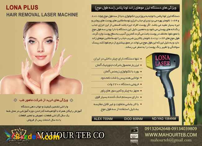 قوی ترین دستگاه لیزر موی زائد سه طول موج با نتیجه تضمینی، کاملا بدون درد با شات نامحدود دستگاه لیزر لونا پلاس جدیدترین و پیشرفته ترین دستگاه لیزر رفع موهای زائد می باشد که با بهره گیری از لیزر بار و هندپیس آلمانی و تابش سه طول موج الکس دایود اندیاگ و همچنین برخورداری از ویژگی های منحصر به فرد مورد توجه بسیاری از کلینیک های زیبایی و پزشکان قرار گرفته است. دستگاه لیزر هرریموال لونا پلاس توانایی زدن شات نامحدود را دارد و مجهز به چیلر و کمپرسور های پاور می باشد. یکی از مهمترین ویژگی های دستگاه لونا پلاس بدون درد بودن لیزر با این دستگاه می باشد. دستگاه لونا پلاس به همراه لیزر بار از کمپانی معتبر جنوپتیک (GENOPTIK) آلمان دارای اثربخشی متفاوت و غیر قابل مقایسه به دلیل استفاده از سه طول موج می باشد. مشخصات دستگاه لیزر سه طول موج لونا پلاس: دستگاه لیزر لونا پلاس اولین و تنها دستگاه دارای چیلر داخلی در ایران با سیستم خنک کننده بسیار قوی برای ثابت نگه داشتن دما » 755 نانومتر الکساندرایت Alexandrite » 808 نانومتر دایود Diode » 1064 نانومتر اِن دی یگ ND:YAG » لیزربار محصول شرکت جنوپتیک آلمان » بورد با تکنولوژی زیمنس آلمان » توانایی هندپیس با شات نامحدود » خروجی دستگاه 2200 وات » مجهز به چیلر و کمپرسور های پاور » دارای کولینگ بی نظیر و کاملا بدون درد » با اثر بخشی متفاوت و غیر قابل مقایسه به دلیل استفاده از سه طول موج ویژگی های خرید از شرکت تجهیزات پزشکی ماهور طب: ∗ وارانتی تضمین کیفیت و جوابدهی دستگاه ∗ آموزش کاملا رایگان همراه با گواهینامه گذراندن دوره آموزشی در محل شما ∗ یکسال گارانتی قطعات، تعویض و تعمیر قطعات بدون کوچکترین هزینه ∗ با ده سال خدمات پس از فروش ∗ ارسال به سراسر کشور ∗ دارای شرایط اقساط بدون بهره برای اطلاع از قیمت و شرایط خرید دستگاه لیزر الکس دایود اندیاگ لونا پلاس با ما تماس بگیرید: مشاور فروش: 09132042648 آدرس سایت: www.mahourteb.com *** مشاوره و تجهیز فقط به صورت حضوری در محل شرکت ماهور طب انجام می شود*** توجه : شرکت ماهور طب هیچ گونه فروش اینترنتی ندارد!!!