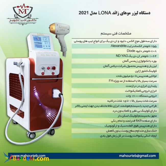 *** مشاوره و تجهیز فقط به صورت حضوری در محل شرکت ماهور طب انجام می شود. *** شرکت ماهور طب آماده ارائه خدمات و فروش دستگاه لیزر موی زائد به مشتریان عزیز در استان فارس و شهر شیراز می باشد. قیمت دستگاه لیزر موهای زائد در شرکت ماهور طب بسیار مناسب است، زیرا فروش دستگاه لیزر مو در شیراز توسط شرکت اصلی تجهیزات پزشکی ماهور طب و بدون هیچ واسطه ای انجام می شود. طریقه نصب و راه اندازی دستگاه لیزر لونا و همچنین نحوه کار با آن به طور کامل و بصورت رایگان توسط متخصصین شرکت ماهور طب به پزشک و اپراتور دستگاه لیزر داده خواهد شد. از طریق تماس با شرکت ماهور طب می توانید دستگاه لیزر موی زائد لونا را به همراه یک سال گارانتی و 10 سال خدمات پس از فروش دریافت نمایید. فروش دستگاه لیزر مو در شیراز به صورت های مختلف نقد و اقساط بدون بهره همراه با خدمات پس از فروش و گارانتی معتبر انجام می شود. شرکت ماهور طب دستگاه لیزر لونا را همراه با آموزش کامل توسط متخصصین شرکت به فروش می رساند. دستگاه لیزر سه طول موج لونا دستگاه لیزر الکس دایود اندیاگ لونا جدیدترین و بهترین دستگاه لیزر موی زائد برای انواع پوست و مو در طیف رنگ های مختلف است. این دستگاه لیزر دارای چیلر داخلی قدرتمند و سیستم خنک کننده بسیار قوی می باشد که می توان فرایند لیزر موهای زائد را با توان بالا و بدون ایجاد سوختگی روی سطح پوست و ایجاد درد با وجود قابلیت منحصر بفرد چیلر داخلی برای همه تیپ های پوستی انجام داد. فروش انواع دستگاه های زیبایی در شیراز شرکت تجهیزات پزشکی ماهور طب تولید کننده و ارائه دهنده انواع دستگاه های لیزر و زیبایی در شیراز می باشد. این دستگاه ها عبارتند از : دستگاه لیزر موهای زائد لونا، دستگاه لاغری آر اف کویتیشن بلسا، دستگاه آر اف فرکشنال سوزنی زئوس، انواع دستگاه های هایفو (اولترا، سه بعدی، چهار بعدی، واژینال، لیفتینگ صورت و …)، دستگاه لیزر رفع تاتو کیوسوئیچ، دستگاه لیزر تخصصی co2 فرکشنال، دستگاه بادی آنالایزر، دستگاه اسکین آنالایزر و …. ماهور طب آماده ارائه خدمات زیر به شما مشتریان عزیز در سراسر ایران می باشد: • ارسال رایگان کلیه دستگاه های زیبایی به سراسر ایران • ارایه گارانتی و خدمات پس از فروش معتبر • نصب و راه اندازی دستگاه به صورت رایگان • آموزش تخصصی رایگان دستگاه • ارائه مدرک گواهینامه آموزشی بین المللی از مراکز معتبر علمی برای دریافت اطلاعات بیشتر در خصوص خرید بهترین دستگاه لیزر موهای زائد در شیراز با مشاوران ماهور طب تماس حاصل فرمایید: مشاور ماهور طب : 09132042648 آدرس سایت : www.mahourteb.com *** مشاوره و تجهیز فقط به صورت حضوری در محل شرکت ماهور طب انجام می شود. *** توجه : شرکت ماهور طب هیچ گونه فروش اینترنتی ندارد!!!