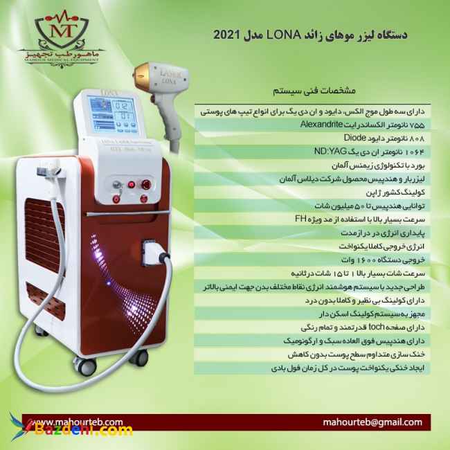 *** مشاوره و تجهیز فقط به صورت حضوری در محل شرکت ماهور طب انجام می شود. *** فروش دستگاه لیزر موهای زائد در مشهد توسط شرکت تجهیزات پزشکی ماهور طب تولید کننده و ارائه دهنده انواع دستگاه های لیزر، زیبایی، جوانسازی و لاغری با بیش از 13 سال سابقه فعالیت در حوزه تولید و فروش دستگاه های زیبایی و لیزر فروش دستگاه لیزر مو در مشهد به صورت های مختلف نقد و اقساط بدون بهره همراه با خدمات پس از فروش و گارانتی معتبر انجام می شود. شرکت ماهور طب دستگاه لیزر لونا را همراه با آموزش کامل توسط متخصصین شرکت به فروش می رساند. قیمت دستگاه لیزر موهای زائد لونا محصول شرکت ماهور طب بسیار مناسب است، زیرا فروش دستگاه لیزر مو در مشهد توسط شرکت اصلی تجهیزات پزشکی ماهور طب و بدون واسطه انجام می شود. توسط متخصصین شرکت ماهور طب طریقه نصب و راه اندازی دستگاه لیزر لونا و همچنین نحوه کار با آن به طور کامل و رایگان به پزشک و اپراتور دستگاه داده خواهد شد. مشخصات دستگاه لیزر الکس دایود اندیاگ لونا دستگاه لیزر سه طول موج لونا جدیدترین و موثرترین دستگاه لیزر در فرایند حذف دائمی موهای زائد برای انواع پوست و مو با رنگ های مختلف می باشد. این دستگاه مجهز به سیستم خنک کننده بسیار قوی و چیلر داخلی قدرتمند است که می توان با وجود این قابلیت منحصر بفرد، فرایند لیزر را با توان بالا و بدون ایجاد سوختگی روی سطح پوست و ایجاد درد برای همه تیپ های پوستی انجام داد. فروش انواع دستگاه های زیبایی در مشهد شرکت ماهور طب تولید کننده و فروشنده انواع دستگاه های زیبایی در مشهد می باشد. برخی از این دستگاه ها عبارتند از : دستگاه لیزر موی زائد سه طول موج لونا، دستگاه آر اف فرکشنال میکرونیدلینگ زئوس، دستگاه لاغری آر اف کویتیشن بلسا، انواع دستگاههای هایفو (جوانساز، لاغری، اولترا، سه بعدی، چهاربعدی، واژینال، لیفتینگ صورت و ...)، دستگاه لیزر رفع تاتو کیوسوئیچ، دستگاه لیزر تخصصی co2 فرکشنال، دستگاه اسکین آنالایرز، دستگاه بادی آنالایزر، دستگاه مزوگان و .... ماهور طب آماده ارائه خدمات زیر به شما مشتریان عزیز در سراسر ایران می باشد: ارسال رایگان کلیه دستگاه های زیبایی به سراسر ایران ارایه گارانتی و خدمات پس از فروش معتبر نصب و راه اندازی دستگاه به صورت رایگان آموزش تخصصی رایگان دستگاه ارائه مدرک گواهینامه آموزشی بین المللی از مراکز معتبر علمی برای دریافت اطلاعات بیشتر در خصوص خرید بهترین دستگاه لیزر موهای زائد در مشهد با مشاوران ماهور طب تماس حاصل فرمایید: مشاور ماهور طب : 09132042648 آدرس سایت : www.mahourteb.com *** مشاوره و تجهیز فقط به صورت حضوری در محل شرکت ماهور طب انجام می شود. *** توجه : شرکت ماهور طب هیچ گونه فروش اینترنتی ندارد!!!
