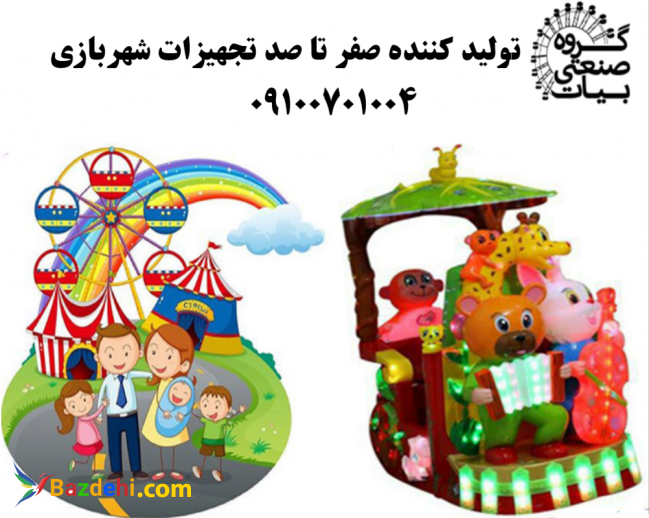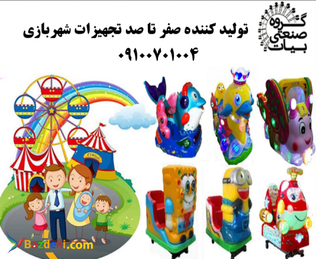 تولید و واردات گروه صنعتی بیات تجهیزات شهربازی مشاوره و طراحی صفر تا صد شهربازی تکان دهنده : واردات و تولید گروه صنعتی بیات انواع دستگاه تکان دهنده سکه ای و ریموتی دستگاه تکان دهنده سکه ای دستگاهی است مناسب برای سنین ۳ تا ۹ سال دارای ظاهری جذاب و کارتونی با نورپردازی با رنگ های مختلف و دارای چرخ برای جابجایی تایم قابل تنظیم از ۳ تا ۱۰ دقیقه تحمل وزن تا ۸۰ کیلوگرم این دستگاه به دلیل قیمت ارزان و سوددهی بالا و جذب مشتری بیشتر برای فروشگاه ها و اصناف و درآمدی بالای ۱ تا ۵ میلیون در ماه مورد استقبال همگان قرار گرفته است شما نیز می توانید با خرید این دستگاه از درآمد بالا در کنار شغل خود بهره مند گردید . مورد استفاده تمامی اصناف هتل ها -مراکز خرید -فروشگاه ها - شهربازی ها - مهدکودک ها و مغازه ها سراسر کشور ارسال بار به تمام نقاط کشور در کمتر از ۴۸ ساعت نکته قابل توجه جهت خریدان محترم اگر اولین بار اقدام به خرید می نمائید در نظر داشته باشید : ۱- دستگاه مورد نظر را از شرکت های معتبر و دارای مجوز تهیه نمائید . ۲- دستگاه را همراه استاندارد و کارت ضمانت دارای مهر و امضا تهیه نمائید. ۳- دستگاه های با کیفیت و مرغوب تهیه نمائید . تمامی دستگاههای بازی، آماده تحویل زیر نظر بزرگترین گروه سازنده دستگاههای شهربازی با تأیید استاندارد ملی ایران و استاندارد اروپا میباشند. پردرآمدترین دستگاههای شهر بازی گروه صنعتی بیات با نازلترین قیمت از ما بخواهید. 09100701004