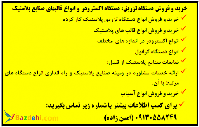 خریدوفروش دستگاه تزریق پلاستیک ایرانی وچینی بادی،بادکن،گرانول،اکسترودر،آسیاب همراه با مشاوره وراه اندازی