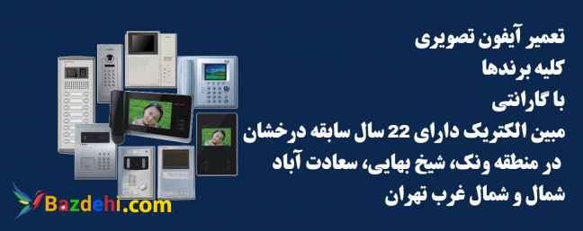 تخصصی ترین مرکز تعمیرات آیفون تصویری کلیه برندها در تهران با کادری مجرب و حرفهای استفاده از قطعات اورجینال، اعزام کارشناس در اسرع وقت به محل مبین الکتریک دارای سابقه 20 ساله در منطقه ونک سعادت آباد ولنجک ..... شمال و شمال غرب تهران تعمیر تخصصی آیفون تصویری کوماکس، تابا، کوکوم، هیوندای، کالیوس، تک نما، اکو، کنوی، سوزوکی، سیماران و .... رفع مشکل باز نشدن درب توسط آیفون تصویری رفع مشکل زنگ نخوردن آیفون تصویری رفع مشکل آبی شدن تصویر آیفون تصویری رفع مشکل نداشتن تصویر آیفون تصویری رفع مشکل تداخل زنگ واحدها در آیفون های تصویری رفع مشکل نویز صدای آیفون تصویری رفع مشکل برد تغذیه آیفون تصویری طبق تعرفه های مصوب و مشخص