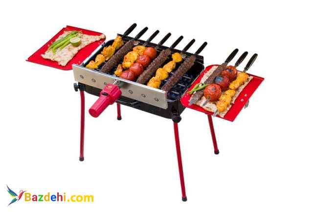 طراحی جدیدوزیبا طراحی جدیدوزیبا دوگانه سوز ذغالی وگازی(گازشهری ومایع)) پخت آسان،سریع ویکنواخت،بدون ایجادسوختگی گردش همزمان اتوماتیک سیخها(دردوجهت)توسط موتوربایک عددباطری(1/5 ولت) باقدرت بالا مصرف پایین باطری قابلیت پخت انواع کباب کوبیده،برگ،چنجه،جوجه ،گوجه و... دارای دوسری سیخ استیل دردوسایزمتفاوت کم حجم وحمل آسان قابل استفاده درمنزل،محل کار،سفر،پیک نیک و مونتاژآسان وسریع درکمترازسه دقیقه صرفه جویی درزمان وانرژی بدنه دورولعاب ورنگ پودری الکترواستاتیک دربهاوپایه ها شعله پخش کن باروکش لعاب شستشوی آسان بدنه وسایرقطعات درای گواهی ثبت اختراع به شماره62553 ازاداره ثبت شرکتها 24ماه ضمانت و10سال خدمات پس ازفروش