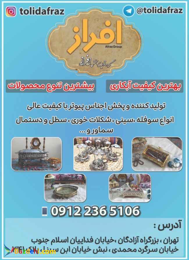 تولیدوپخش افراز بزرگترین تولید کننده وپخش ظروف درجه یک پیوتر با کیفیت عالی وبیشترین تنوع با بالاترین کیفیت آبکاری وعرضه برندهای معتبر بازار باقیمتی فوق العاده درخدمت اصناف وتمام فروشگاهای پخش میباشد.