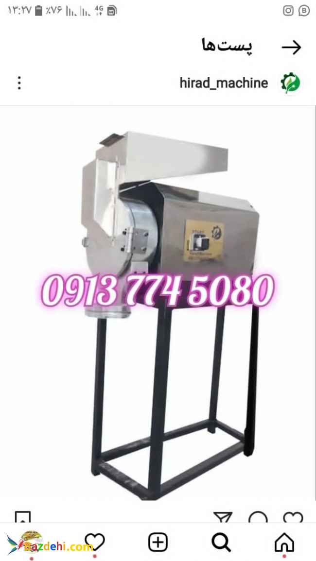 دستگاه اسیاب چکشی مخصوص عطاری مدل سفارشی مکانیزم پره دنده ای جنس دنده ها_چدن داکتیل جنس تیغه➖ فولاد با مقاومت 60 راکول، ضد سایش و نشکن جنس بدنه استیل توان موتور➖ ۳ اسب بخار میزان تولید : ۲۵ تا ۳۰ کیلو در ساعت فن خنک کننده _ دارد دور موتور _ ۳۰۰۰ دور برق مصرفی تک فاز جهت اسیاب دانه های سخت عطاری هسته خرما ، زرد چوبه سعد سنجد و دارچین نخود فلفل سیاه و... دارای سه توری قابل تعویض کم صدا بدون ایجاد گرد و غبار دارای ظرف مخزن استیل پنج سال خدمات پس از فروش
