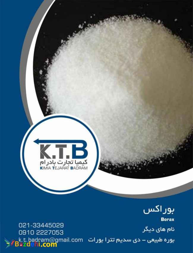 نام های دیگر : بوره - BORAX – نمک اسید بوریک – سدیم بورات – سدیم تترا بورات – دی سدیم تترا بورات فرمول شیمیایی : Na2B407 10H20 درصد خلوص : 99% شکل ظاهری : اصولا بشکل پودر سفید رنگ است . بلور های نرم و بی رنگ که براحتی در آب حل می شوند. بسته بندی : کیسه های 25 تا 50 کیلوگرمی گرانول از رسیدن رطوبت و اب به بوراکس جلوگیری می کند تا بهم نچسبند. کاربردهای بوراکس :  مواد تشکیل دهنده ی بسیاری از شوینده های شیمیایی ، مواد آرایش و لعاب ها می باشد.  در بیوشیمی برای ساخت محلول های بافری بعنوان ماده تاخیر انداز آتش استفاده می شود .  ترکیبات ضد قارچ برای فایبر گلاس ها  بعنوان فلاکس در متالوژی استفاده می شود. Gmail : این آدرس ایمیل توسط spambots حفاظت می شود. برای دیدن شما نیاز به جاوا اسکریپت دارید راه های ارتباط با ما : 021-33444929 021-33445029 09102227053