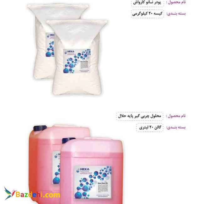 فروش مواد شوینده کارواش مواد نانو شامپو کارواش فروشگاه هگزا شیمی فروش و تولید و پخش عمده محصولات شوینده و پاک کننده مواد شیمیایی و صنعتی تولیدی و بازرگانی هگزا شیمی افتخار دارد تا محصولات تولیدی خود و برترین برندهای شوینده را خدمت همکاران عزیز در سراسر ایران عرضه نماید **انواع شامپو کارواش **پودر و مکمل نانو **انواع واکس **مواد صفرشویی و موتورشویی **انواع اسپری **پودر دستی **سود پرک و... ادرس سایت : http://hexachem.ir جهت کسب اطلاعات بیشتر با ما تماس بگیرید 09132022404 03137476259 حمیدرضا اعرابی ادرس : اصفهان _ اتوبان ذوب اهن _ منطقه صنعتی کرسگان _ حدفاصل خیابان امام خمینی و خیابان شهید منتظری _فروشگاه هگزاشیمی