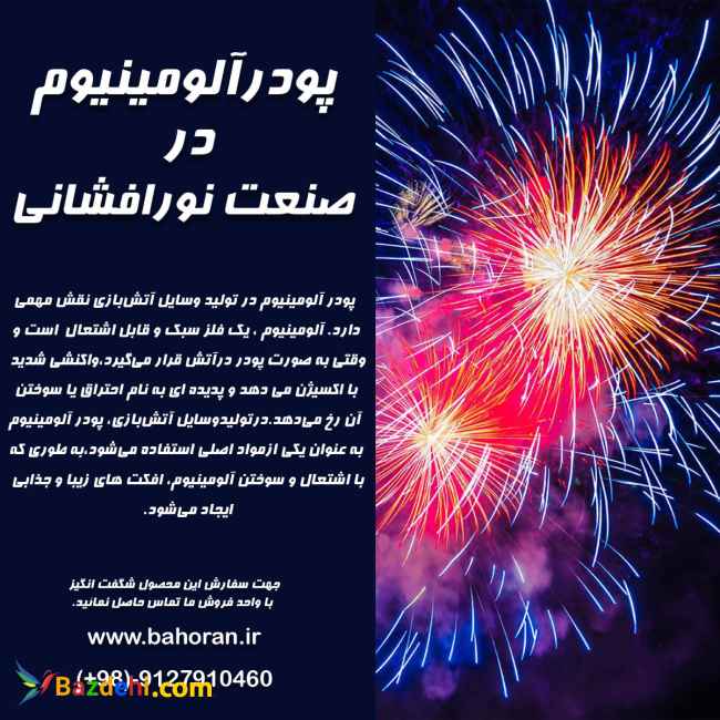 پودر آلومینیوم بسیار اشتعال پذیر است و به همین دلیل یکی از رایج ترین کاربردهای آن در نمایشگرهای پیروتکنیکی است که بسیار روشن می سوزد و برای ایجاد جلوه های مختلف فلاش در نمایشگرها با استفاده از پودرهای مختلف استفاده می شود علاوه بر این موارد ، پودرآلومینیوم در دیگر صنایع ،مانند تولید رنگ پوششی وسایل بهداشتی – مواد منفجره ، کاربرد ویژه ی را دارا می باشد. امکان ارسال به تمام نقاط ایران احتراماٌجهت کسب اطلاعات بیشتر با کارشناسان ما تماس حاصل نمائید . شماره تماس :۰۹۱۲۷۹۱۰۴۶۰ وب سایت : bahoran.ir اینستاگرام:blockheblex