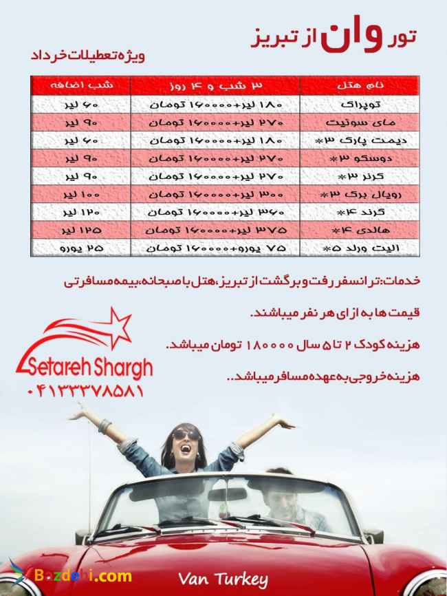 تور زمینی وان 3 شب و 4 روز اقامت با صبحانه و ترانسفر و بیمه