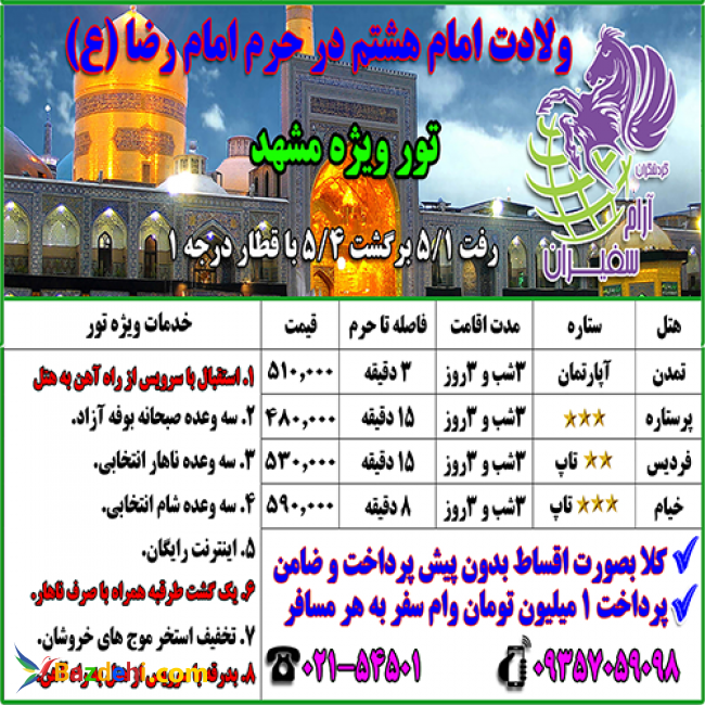 #تور ویژه مشهد ولادت امام رضا (ع) با آرام سفیران#