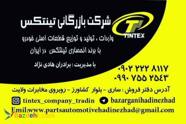 واردات، تولید و توزیع قطعات اصلی خودرو با برند انحصاری تینتکس در ایران.