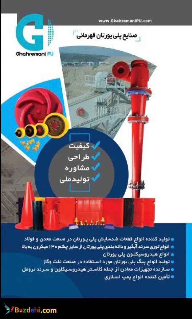 صنایع پلی یورتان قهرمانی (صنعتی) تولید کننده انواع قطعات ضدسایش پلی یورتان انواع توری سرند پلی یورتان جهت مصارف آبگیری و دانه بندی از سایز 100میکرون به بالا انواع هیدروسیکلون پلی یورتان انواع پیگ پلی یورتان انواع چرخ و غلطک پلی اورتان انواع ورق و لوله پلی یورتان پروانه و لاینر پمپ پلی یورتان انواع پمپ اسلاری طرح وارمن انواع پمپ دوغاب مشاوره جهت حل مشکلات تولید کارخانه تولید کننده قطعات پلی یورتان مشاوره فنی به معادن و صنایع در جهت بهینه سازی قطعات تحت سایش مشاوره، طراحی و تولید کلیه قطعات پلی یورتان مطابق با درخواست مصرف کننده مشاوره، طراحی و ساخت تجهیزات فرآوری معدنی مرتبط با قطعات پلی یورتان مانند کلاستر هیدروسیکلون و دستگاه سرند 021-44266840-09120152140-09163451489-09173327882 پلی یورتان قهرمانی پلی اورتان قهرمانی توری سرند پلی یورتان توری سرند پلی اورتان توری پلی یورتان توری پلی اورتان سرند پلی یورتان سرند پلی اورتان چرخ پلی یورتان چرخ پلی اورتان پنل پلی یورتان پنل پلی اورتان مش پلی یورتان مش پلی اورتان توری ضدسایش سرند ضدسایش کاشی خشک کن توری آبگیر توری خشک کن هیدروسیکلون هیدروسیکلون پلی یورتان هیدروسیکلون پلی اورتان سیکلون پلی یورتان سیکلون ضدسایش اپکس پلی یورتان اپکس پلی اورتان حلزونی سیکلون غلطک پلی یورتان غلطک پلی اورتان کوپلینگ پلی یورتان کوپلینگ پلی اورتان اورینگ پلی یورتان شیت پلی یورتان شیت پلی اورتان لوله ضدسایش لوله پلی یورتان اسکراپر بلت پاک کن پلی یورتان پمپ دوغاب پمپ ضدسایش پمپ وارمن