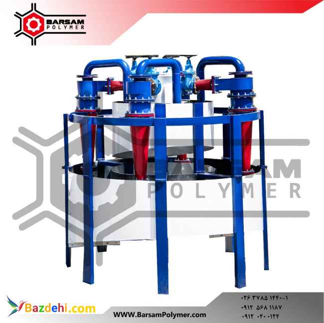 هیدروسیکلون Hydrocyclone به جدا کننده ثابتی گفته می شود که مبنای جدایش در آن به واسطه نیروی گریز از مرکز است و این نیرو در گردابی که به واسطه شکل بدنه هیدروسیکلون (مخروطی – استوانه ای) تولید شده است، قرار داد جریان خوراک (مواد اولیه) که معمولا به طور مماسی وارد هیدروسیکلون پلی یورتان می شود به دو قسمت ته ریز و سرریز تقسیم بندی می شود. قسمت عمده ته ریز شامل جامدات و یا قسمت دانه درشتی است که هنوز در مقداری مایع معلق است و سرریز هم به قسمتی اطلاق می شود که اکثرا مایع و یا شامل بعضی از جامدات بسیار دانه ریز است. عمل جداسازی در این دستگاه ها برمبنای تاثیر نیروهای گریز از مرکز که درون بدنه ی آن تولید می شوند، استوار است. 09171326058 09120400124 09125681187 026-36311742 026-37851440 026-37851441