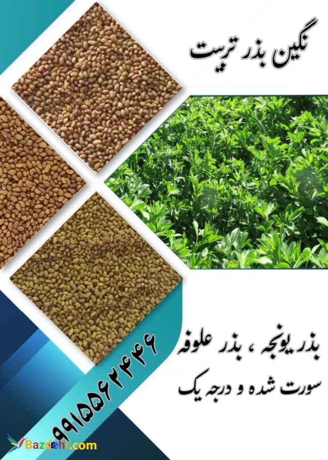 فروش بذر یونجه و بذر علوفه درجه یک به صورت حضوری و غیر حضوری در نگین بذر تربیت به شماره ثبت 413472 فروش انواع بذر یونجه مستقیم از کارخانه و بدون واسطه با بهترین قیمت فروش بذر بذر یونجه همدانی پایه بلند بذر یونجه قره یونجه بذر یونجه رنجر آمریکایی بذر یونجه نیکشهری بذر یونجه بغدادی بذر علوفه اسپرس بذر علوفه شبدر هفت رنگ ایرانی سورت شده و بوجاری شده در کارخانه اختصاصی با درصد خلوص و قوه نامه بالا 98% عرضه در بسته بندی 25 کیلویی لیبل دار و پلمپ با ارائه فاکتور رسمی شرکت با ارسال عمده و خرده به تمام نقاط در کوتاه ترین زمان جهت استعلام قیمت بذر یونجه و نحوه فروش بذر یونجه با شماره های درج شده تماس حاصل فرمایید
