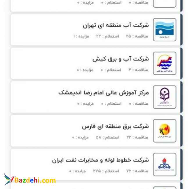 اپلیکیشن معاملاتی آریاتندر؛ مناقصه، استعلام