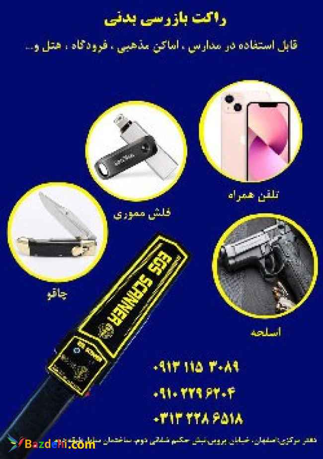 راکت بازرسی ویژه مدارس با نام به منظور شناسایی و عدم ورود تجهیزات ممنوعه به مدارس و جلسه آزمون ها از قبیل گوشی موبایل، شنود، هندزفری، تبلت، دوربین ، ساعت های هوشمند، سلاح های سرد و گرم مورد استفاده قرار گرفته است. راکت بازرسی دارای دو حالت بوق و ویبره می باشد که می توان در سر جلسه امتحان به منظور عدم سر و صدا از حالت ویبره آن استفاده کرد. این راکت امکان آن را دارد که در بازرسی قادر به شناسایی تمام دستگاههای چه روشن و چه خاموش و دستگاه های مخفی شده در زیر البسه و کیف و متعلقات آن است. همچنین این راکت بازرسی را می توان در فرودگاه ها ، سازمان ها و ادارات امنیتی، ورزشگاه ها و استادیوم ها و هر جایی که نیاز به ممانعت از ورود اشیا فلزی خطرناک و تلفن همراه و انواع ابزار فلزی می باشد، نصب و راه اندازی کرد. راکت بازرسی ، با نام های راکت موبایل یاب،فلزیاب بازرسی بدنی ،دستگاه موبایل یاب ،راکت بازرسی فیزیکی ،راکت بازرسی بدنی فلزیاب ،باطوم بازرسی بدنی و .. نیز مورد استفاده قرار میگیرد. تلفن تماس:03132264005 تلفن همراه: 09131153089 ادرس: اصفهان-خيابان حکیم شفایی دوم http://www.sayasecurity.com