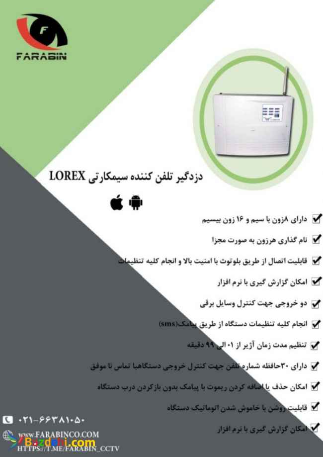 * دارای 8 زون با سیم و 16 زون بی سیم * امکان گزارش گیری با نرم افزار * دارای نرم افزار نسخه اندروید و IOS * دو خروجی جهت کنترل وسایل برقی * انجام کلیه تنظیمات دستگاه از طریق پیامک * قابلیت روشن یا خاموش شدن اتوماتیک دستگاه * قابلیت اتصال از طریق بلوتوث با امنیت بالا و انجام کلیه تنظیمات * گزارش قطع و وصل کردن برق شهری و قطع خط تلفن * امکان خاموش و روشن کردن دستگاه از طریق تماس * قابلیت تعریف هر زون به صورت مجزا