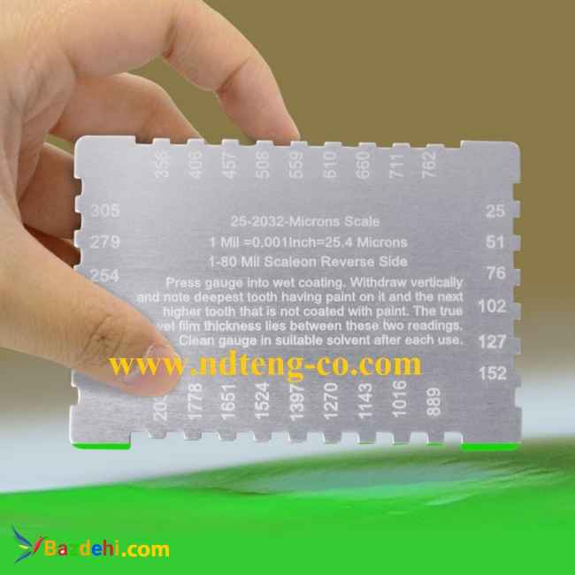 ضخامت سنج رنگ تر/ ضخامت سنج شانه ای رنگ تر/ شانه رنگ تر ضخامت سنج رنگ تر قادر است، ضخامت رنگ تر را قبل از خشک شدن اندازه گیری نماید رنج اندازه گیری:1-118mil(25-3000 micron) فاصله درجه بندی: 25micron شش ضلعی از جنس الومینیوم لطفا جهت کسب اطلاعات بیشتر با شماره های ذیل تماس بگیرید تلفن:02144673983-09334145216 وب سایت:www.ndteng-com ضخامت سنج رنگ تر, ضخامت سنج شانه ای رنگ تر, تستر رنگ, شانه رنگ تر, فیلم رنگ تر , ضخامت سنج رنگ ,ضخامت سنج فیلم تر, ضخامت سنج رنگ تر, ضخامت سنج رنگ شانه ای , wet film