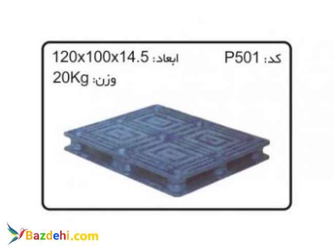 پالت های پلاستیکی P501 کد محصول: p501 نوع کالا: پالت پلاستیکی سطح شیار دار ابعاد خارجی: 14.5*100*120 وزن: 20+-%2.5 مقدار تحمل بار:ثابت 1000kg/ متحرک 4000kg نوع مواد:پلی اتیلن سنگین موارد استفاده: کارخانه ها ، کارگاه ها و پر کردن کف انبار ویژگی های محصول: مقاوم بودن در برابر تغییرات دما،مواد شیمیایی،لغزش،رطوبت و قابلیت بازیافت کامل نام های دیگر محصول:پالت جک پالت خور،پالت لیفتراک خور، پالت 20 کیلویی، پالت دو رو،پالت رو بسته، پالت کف صاف، رنگ های متعارف: آبی تعداد جایگیری در کانتینر: این پالت پلاستیکی با ابعاد 14.5*100*120 و وزن 2.5%- 20+ دارای سطحی شیار دار می باشد که تولید این پالت اسفنجی شکل با مواد پلی اتیلن سنگین همراه با گاز نیتروژن با استفاده از پیچ ومهره های گالوانیزه که بسیار مقاوم و پر قدرت و مقرون به صرفه است انجام میشود. از این پالت برای جابه جایی محصول و پر کردن کف انبار ها، کارگاه ها و کارخانه جات تولیدی استفاده میشود که جابه جایی این پالت پلاستیکی با استفاده از جک پالت و لیفتراک انجام میشود.صفحه ی این محصول به صورت دوبل میباشد که تحمل دمای آن -40~+40 c و تحمل بارگیری آن به صورت ثابت 1000kg و به صورت متحرک 4000kg می باشد. از ویژگی های این محصول می توانیم به مقاوم بودن در برابر تغییرات دما ، مواد شیمیایی ، لغزش ، رطوبت اشاره کرد.این محصول به رنگ آبی می باشد وقابلیت بازیافت کامل را دارد