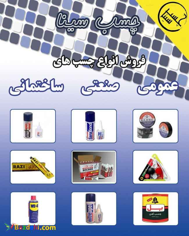 توزیع رایگان انواع محصولات رازی، غفاری،جلاسنج، هل، شمال، بل، انواع چسب نواری، محصولات هنکل آلمان، انواع سیلیکون و پلی اورتان، انواع چسب 1.2.3 mdf