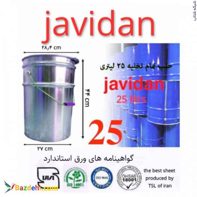 قوطی سازی گالن و حلب تمام تخلیه تلفن دفتر۰۲۱۹۱۰۱۲۴۶۷ ۰۹۱۲۰۵۳۹۸۷۰ ۰۹۰۱۴۲۷۷۲۴۷ اینستاگرامjavidan_can javidaan.ir قوطی سازی جاویدان تولید با کیفیت قوطی گالن حلب تمام تخلیه . تولید قوطی از کوچکترین سایز تا بزرگترین اندازه از سایز ۲۰۰ گرم تا ۶ کیلو گرم. تولید حلب تمام تخلیه در لیتراژ گوناگون از ۴ لیتر الی ۳۰ لیتر با ارتفاع های متغیر ۲۰ الی ۵۲ سانتیمتر. حلب تمام تخلیه شامل بدنه درب کمربند و پلمپ پلاستیکی. استفاده از ورق درجه یک تین پلیت استاندارد در ضخامت گوناگون . ورق با ضخامت ۰٫۳۰ میل برای حلب ۲۰ لیتر و ضخامت ۰٫۳۴ میل برای حلب ۲۴ لیتر و ۲۵ لیتر و ۲۷ لیتر و حلب ۳۰ لیتر. حلب تمام تخلیه مخصوص رنگ رزین اپوکسی هاردنر شیمیایی کود بذر و غیره. قوطی کوچک مخصوص رنگ رزین مواد شیمیایی و آزمایشگاهی و پزشکی. قوطی های درب روده ای کلاژر مخصوص روغن و روانسازها. قوطی های درب فشاری مخصوص گریس و روغن های فشرده. قوطی گالن حلب تمام تخلیه با آببندی دقیق و پیشرفته ترین دستگاه. چاپ با بهترین کیفیت و تحویل سفارش در کوتاهترین زمان. تولید ظروف فلزی فانتزی مخصوص گل و غیره. استفاده از ورق شفاف با گواهینامههای لازم.