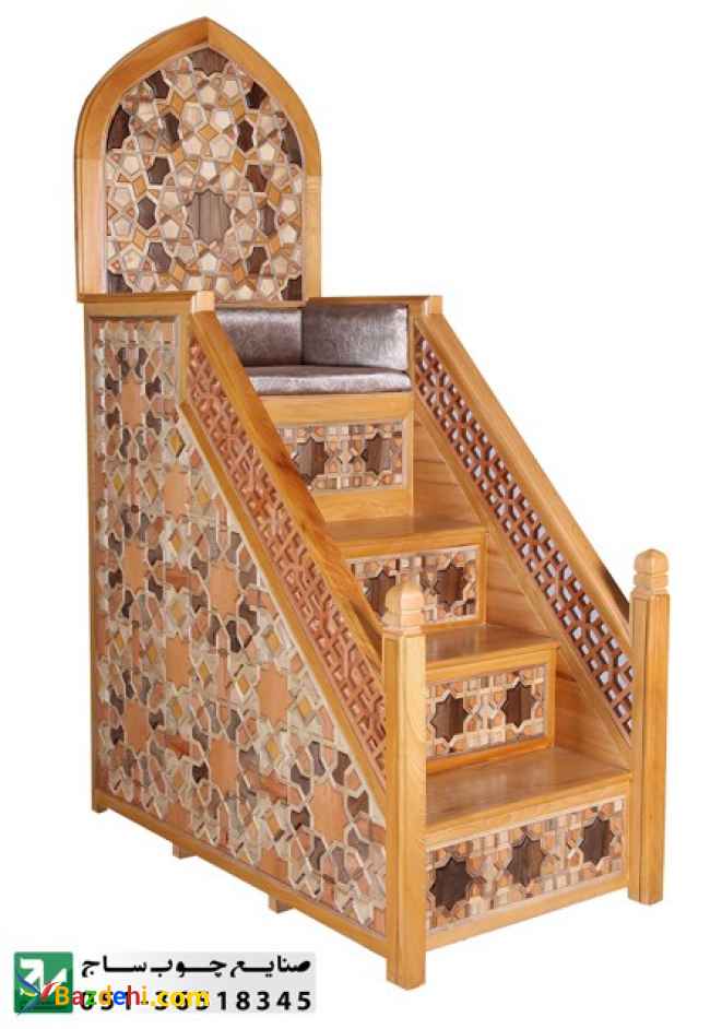 جنس چوب : گردو ، چنار قرمز ، آزاد ، راش کاملا دستساز رنگ : پلی استر جهت اطلاع از قیمت و مشخصات این محصول با ما تماس بگیرید یا از وبسایتمان دیدن فرمایید . صنایع چوب ساج | تولید کننده مصنوعات چوبی مساجد و نمازخانه ها از جمله منبر چوبی مسجد با استفاده از هنر فاخر گره چینی دست . می توان گفت منبر در تمامی ادوار اسلامی جزء ضروریات مساجد محسوب میگردید و نقش موثری در ترویج دین داشته و یکی از مهم ترین عناصر الحاقی مساجد بر ساختار معماری آن ها می باشد که اهمیت آن به جهت مشخص نمودن محل استقرار پیشوای مسلمین به منظور ارائه خطبه بوده است . ساخت منبر با ترکیب عناصر چوبی وهنر گره چینی با استفاده از نقوش هندسی ، نشان دهنده فرهنگ، عقاید و هنر اصیل ایرانی است که منجر به شکوفایی و جلوه در کناردیگرتزئینات مرتبط در ساختار مساجد می شود. همچنین به دلیل نظم و تعادل در طراحی نقوش هندسی آن منجر به ایجاد حس آرامش در هر بیننده ای میگردد. منبرها باتوجه به سلیقه مشتری بصورت دو پله، ۳پله، ۴ پله ، ۵پله ، ۷ پله و ... ارائه می گردد. ساعت کاری مجموعه: از 8 صبح الی 18